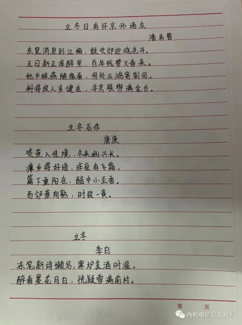 一、“立冬时节,书写温暖”钢笔书法大赛