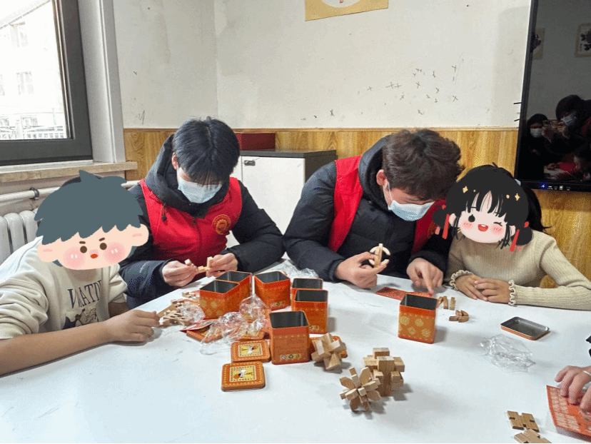 活动中,团队为孩子们带来了棋类玩具、鲁班锁等助学物资,助力他们拓展视野、锻炼思维。在互动环节,志愿者们与孩子们一起做课间操、玩游戏,陪伴他们度过了一段温馨愉快的时光。此外,团队还积极协助中心打扫室内卫生、清扫院落积雪,以实际行动改善孩子们的生活环境。