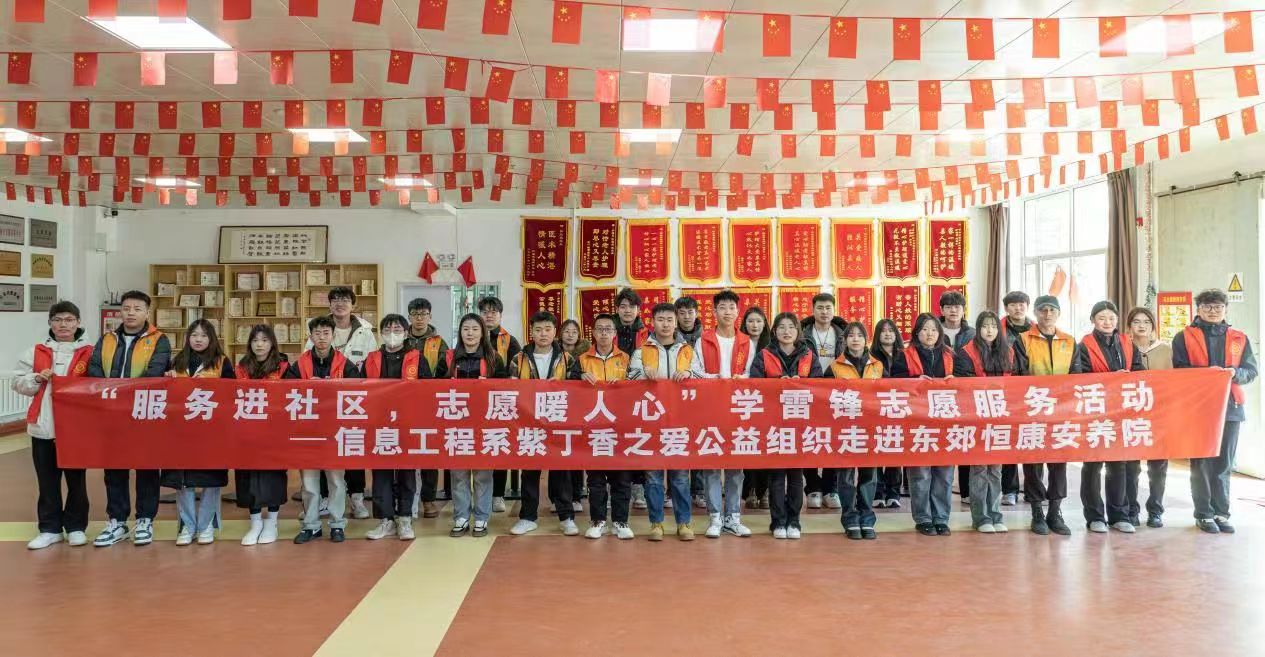 志愿汇聚力量,服务温暖人心。在第61个“3·5学雷锋日”,进一步弘扬雷锋精神及“奉献、友爱、互助、进步”的志愿精神,大力发扬孝亲敬老的中华民族传统美德,积极践行社会主义核心价值观,信息工程系紫丁香之爱志愿者走进东郊恒康安养院参加“服务进社区,志愿暖人心”志愿服务活动。