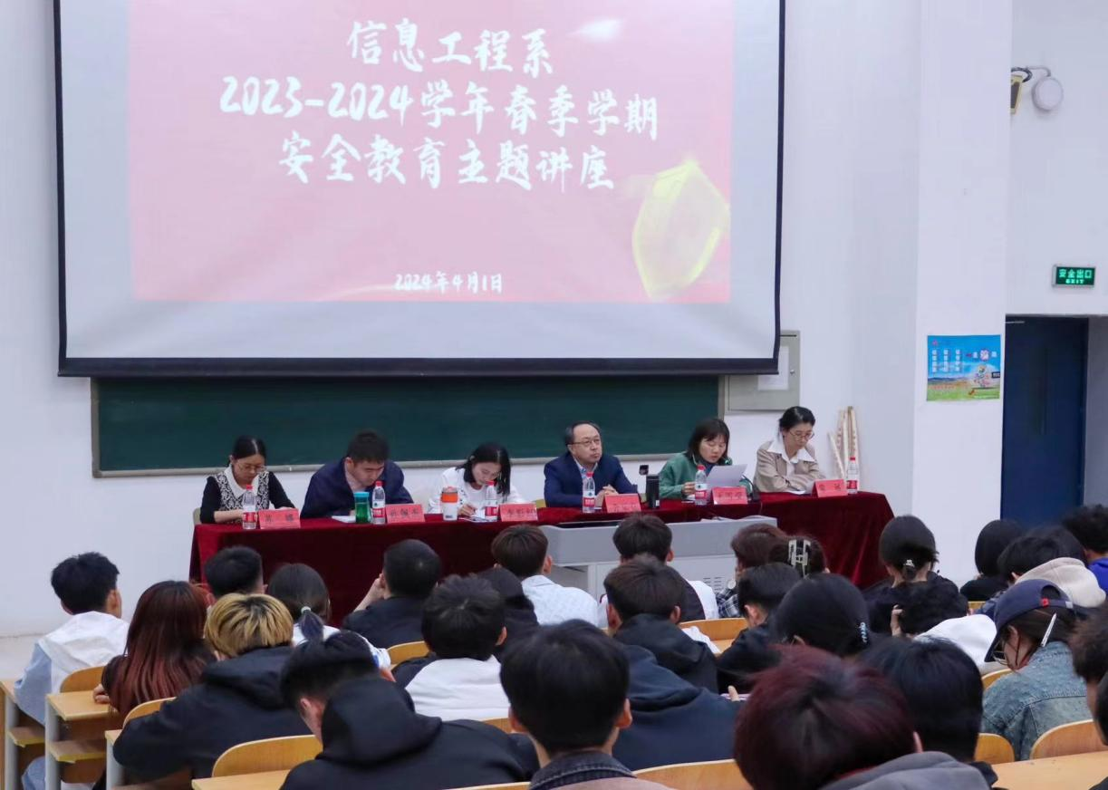 为贯彻落实学院关于校园安全工作的部署,提高同学们安全防范意识,筑牢安全隔离带,进一步做好清明假期校园安全服务管理工作,信息工程系于2024年4月1日在教学楼E109举办2023-2024学年春季学期安全教育主题讲座。信息工程系党总支副书记舍乐莫、信息工程系团学办公室(含就业服务)副主任王雪莹以及2023级各位辅导员老师出席讲座,讲座由2023级辅导员常远主持。2023级全体学生及2022级部分学生代表聆听讲座。