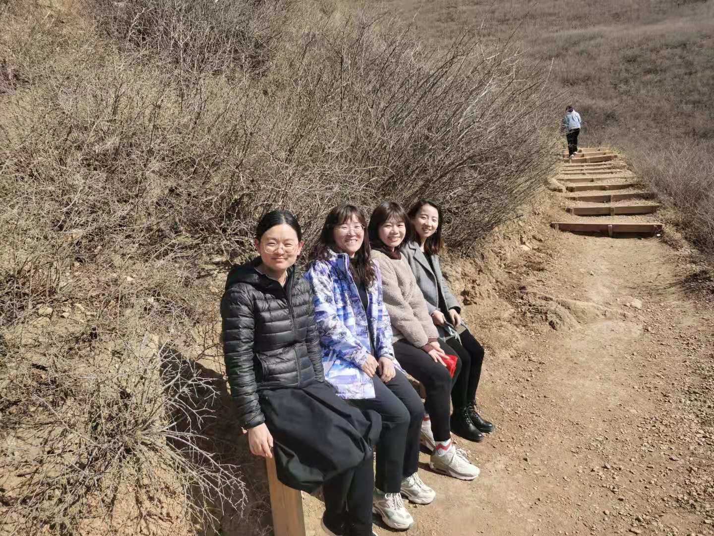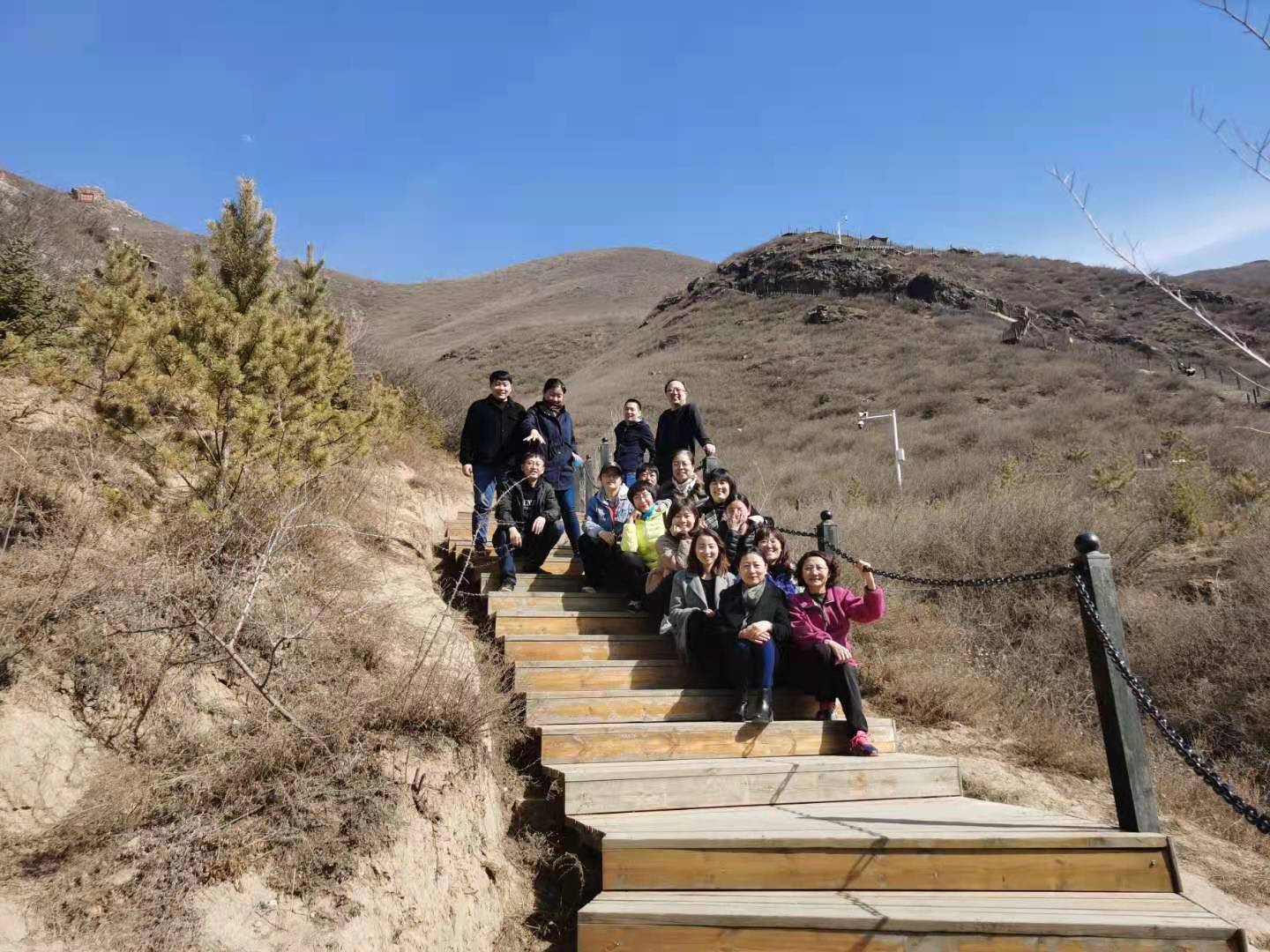 阳春三月,春暖花开。在紧张又忙碌的工作之余,我系教师来到大青山健身步道,迎着春风,踏着欢快的脚步,你争我赶的登上山顶。