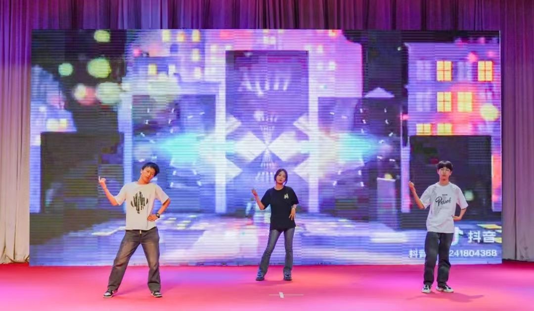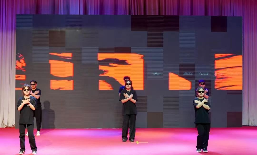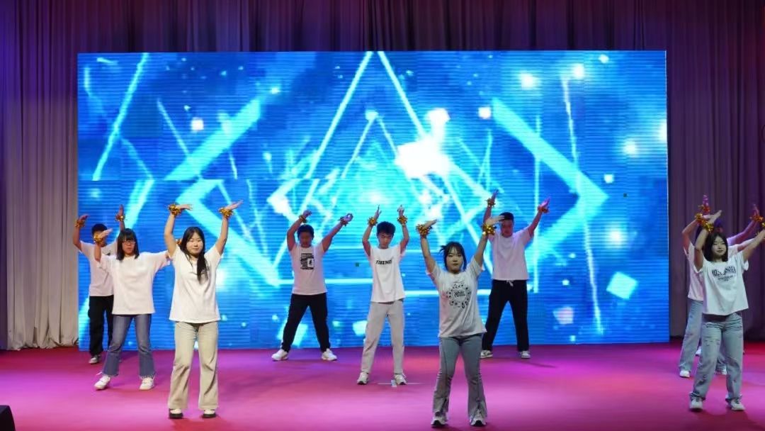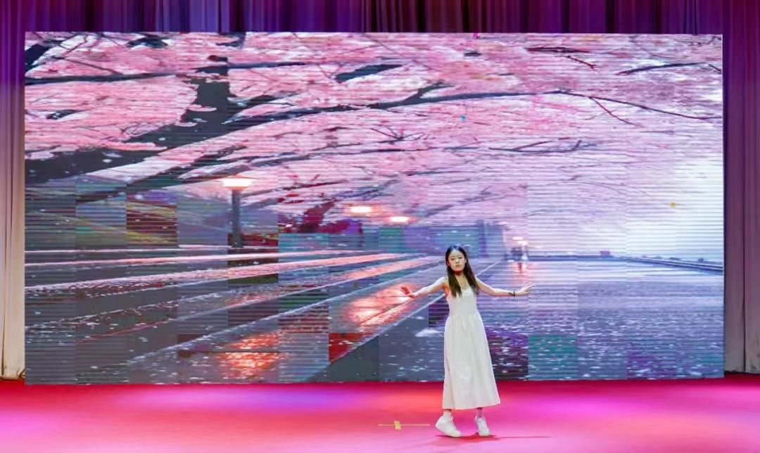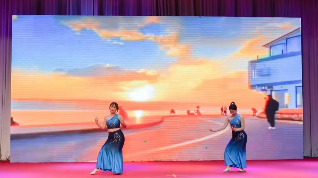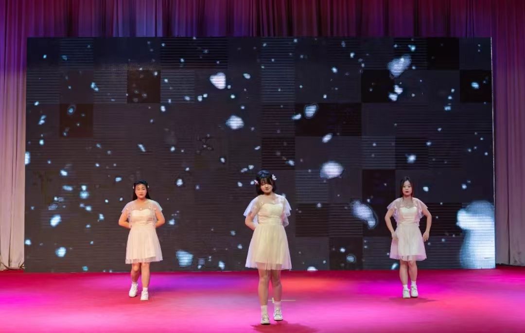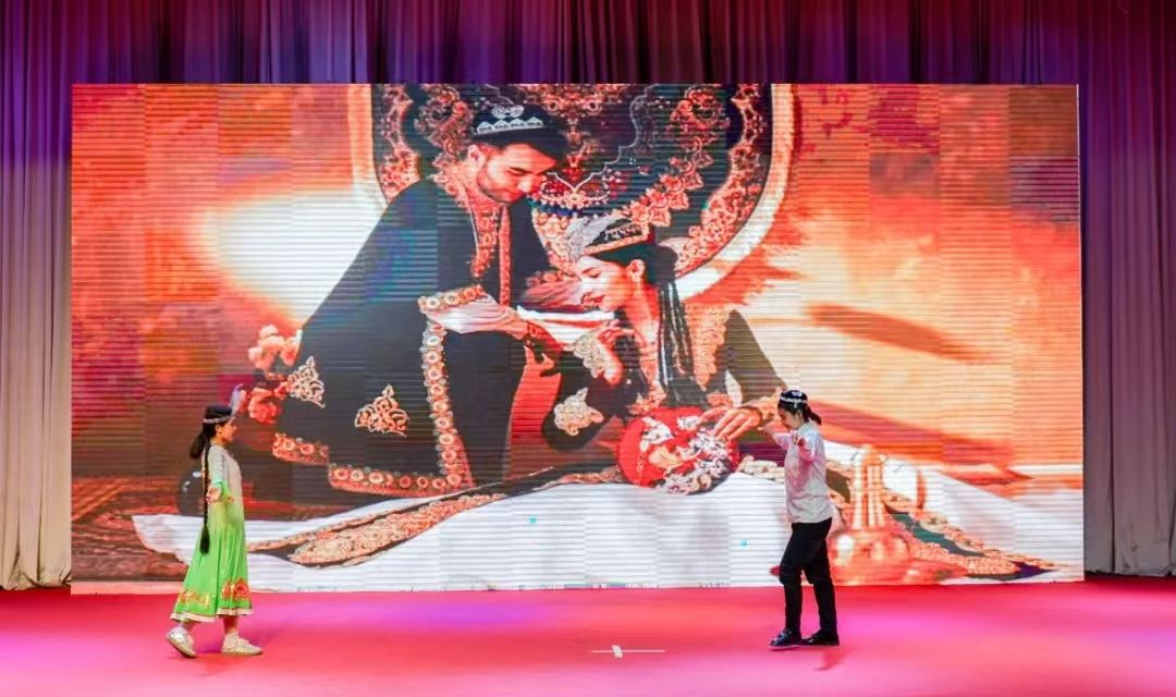 舞台上,同学们热情洋溢,用爱歌唱,用情舞蹈,用欢歌曼舞抒发着对党对祖国的赞美与热爱之情,编织出一幅幅各民族大家庭欢聚一堂的动人画面。