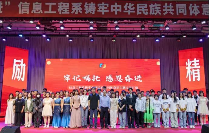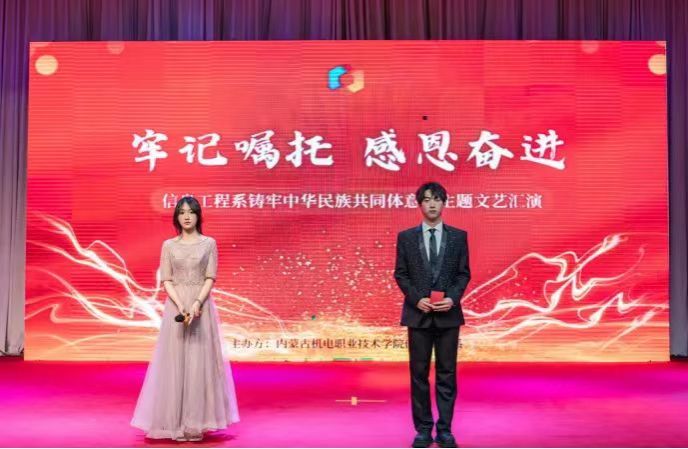 为深入贯彻落实习近平总书记关于对内蒙古的重要指示精神,加强党的民族理论政策宣传,进一步教育引导各族师生铸牢中华民族共同体意识,5月8日,信息工程系举办“牢记嘱托 感恩奋进——铸牢中华民族共同体意识”文艺汇演活动。