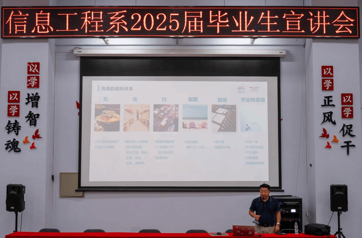 为了向即将步入职场的毕业生们提供详尽的就业指导与前瞻性职业规划信息,助力他们顺利迈向充满挑战与机遇的职业生涯。2024年6月27日,信息工程系于D109教室顺利举办2025届毕业生宣讲会。