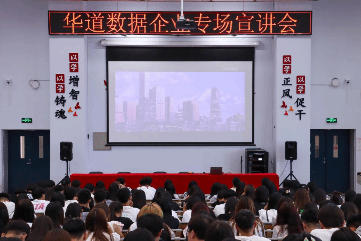 本次宣讲会上,“华道数据”公司代表向与会的同学们详细介绍了企业的核心业务、企业文化、发展历程以及招聘需求岗位和工资福利待遇。同时,针对同学们普遍关心的职业发展问题,公司代表耐心解答,并就公司内部的晋升机制、职业发展规划以及为员工提供的成长空间和机会等内容进行了分享。