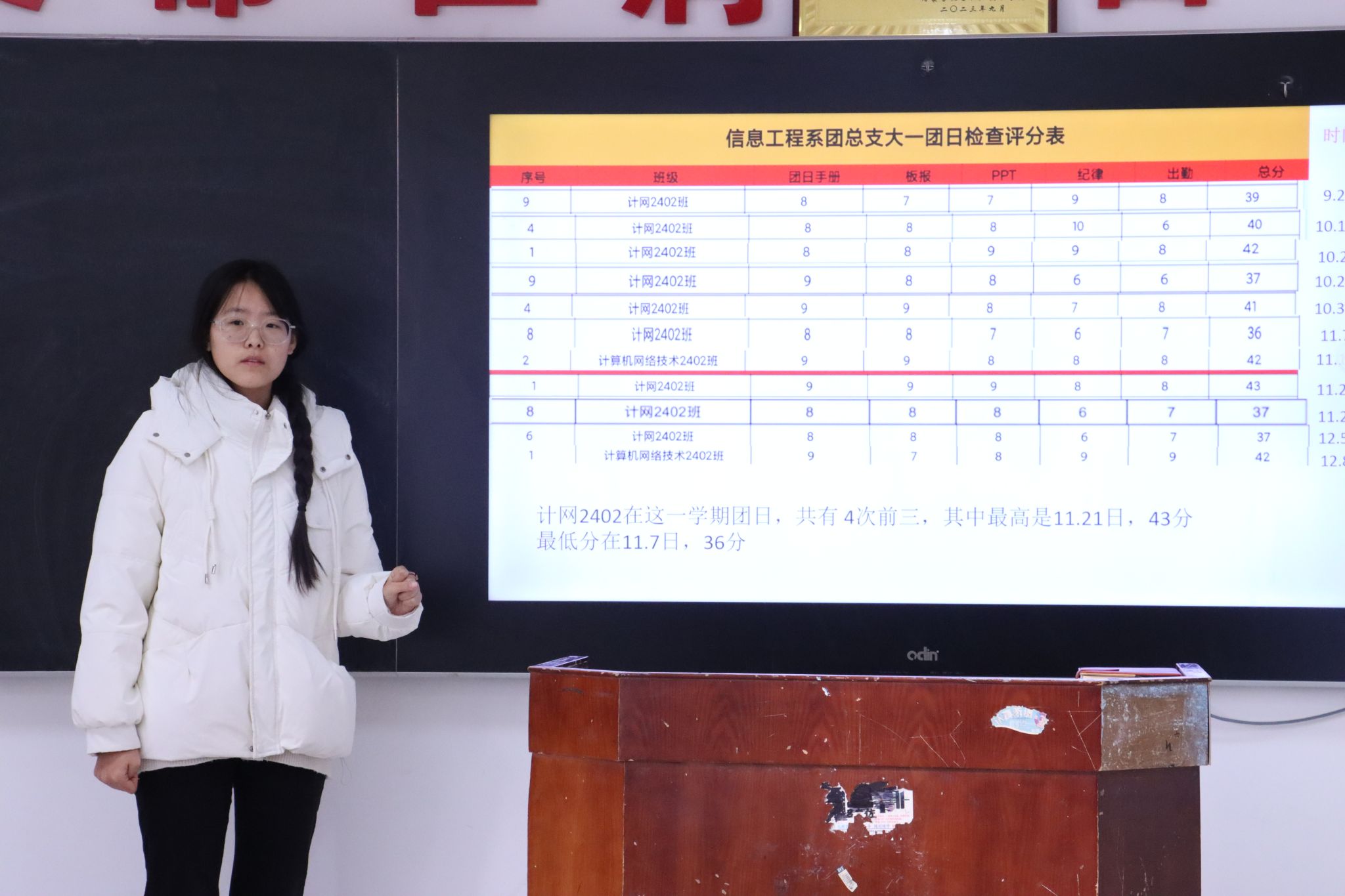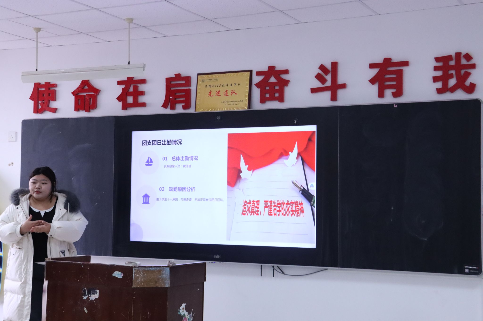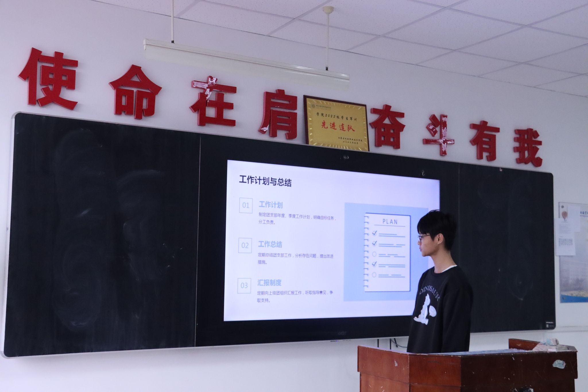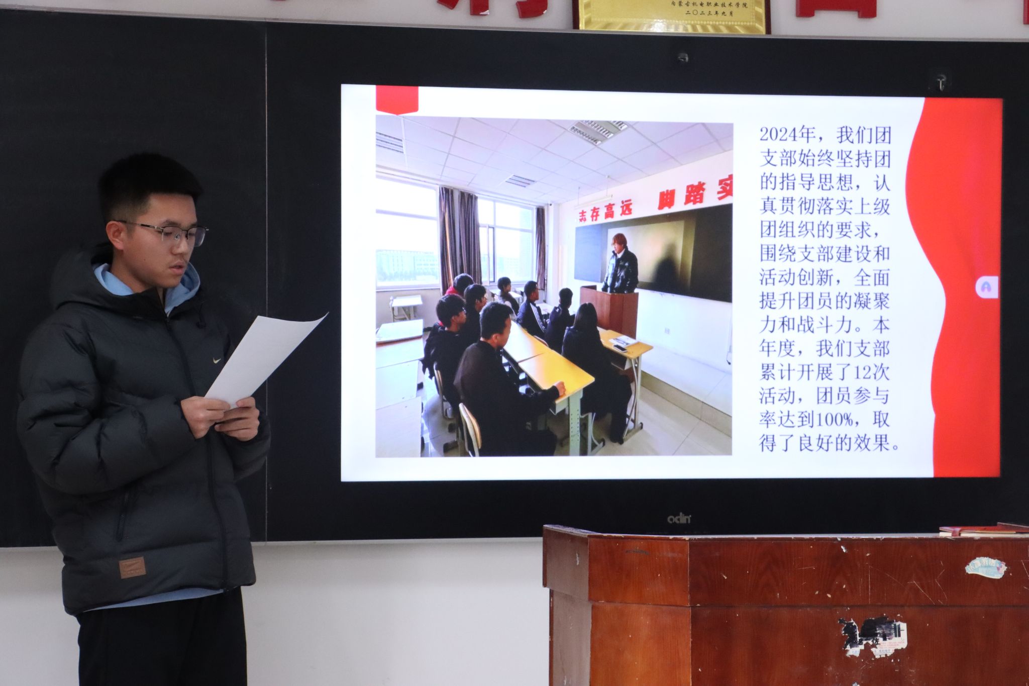 各班级团支书依次上台,通过详实的数据,展示了过去一学期在思想引领、组织建设、团日活动等方面的成果成效,并坦诚剖析了工作中遇到的挑战与不足,提出了今后工作的努力方向和具体规划。