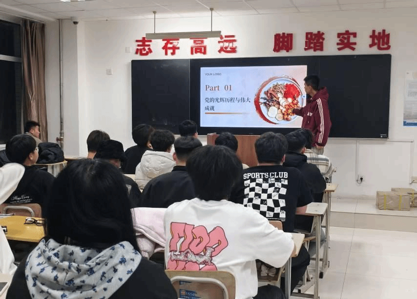 各班级团支部通过PPT、观看视频、举例等形式,生动展现了党从革命时期发展的艰辛,到社会主义时期的积极奋进,再到改革开放时期的伟大成就,让同学们感受到党一路走来的不易。“六句话的事实和道理”提供了科学的指引和砥砺前行的指南,让同学们感受科技创新的实践成果,深刻感悟党为人民谋幸福的初心和使命。
