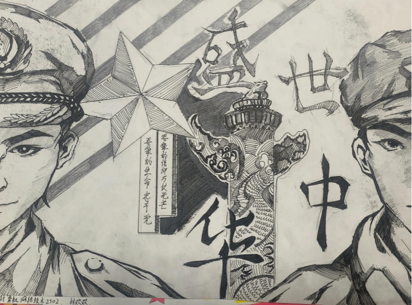 本次活动鼓励学生围绕“爱国情怀”与“时代担当”进行原创手绘。同学们积极参与,作品题材广泛,既有对历史人物与革命先辈的深情刻画,也有对当代榜样与国家发展辉煌成就的生动描绘。